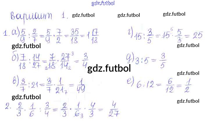 Готовые домашние задания по Математике за 5 класс Кузнецова Дидактические материалы Академический школьный учебник 2014 ФГОС - ПР №37. Деление дробей вариант-1