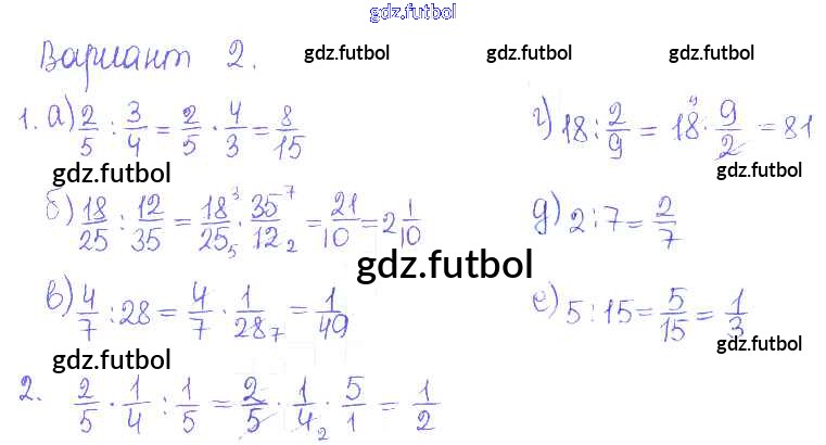 Готовые домашние задания по Математике за 5 класс Кузнецова Дидактические материалы Академический школьный учебник 2014 ФГОС - ПР №37. Деление дробей вариант-2