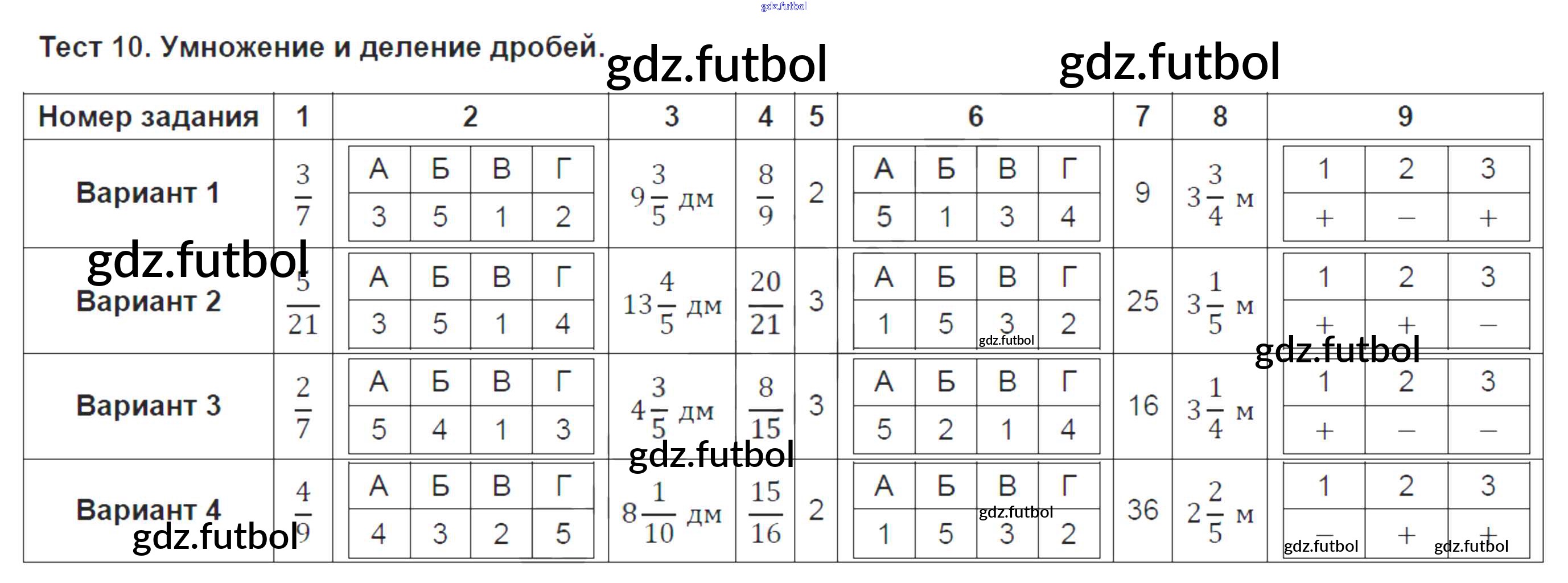 Готовые домашние задания по Математике за 5 класс Кузнецова Тематические тесты 2018 ФГОС - Тесты Тест №10. Умножение и деление дробей