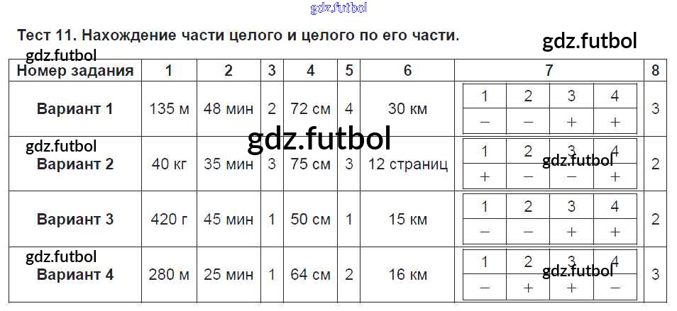 Готовые домашние задания по Математике за 5 класс Кузнецова Тематические тесты 2018 ФГОС - Тесты Тест №11. Нахождение части целого и целого по его части