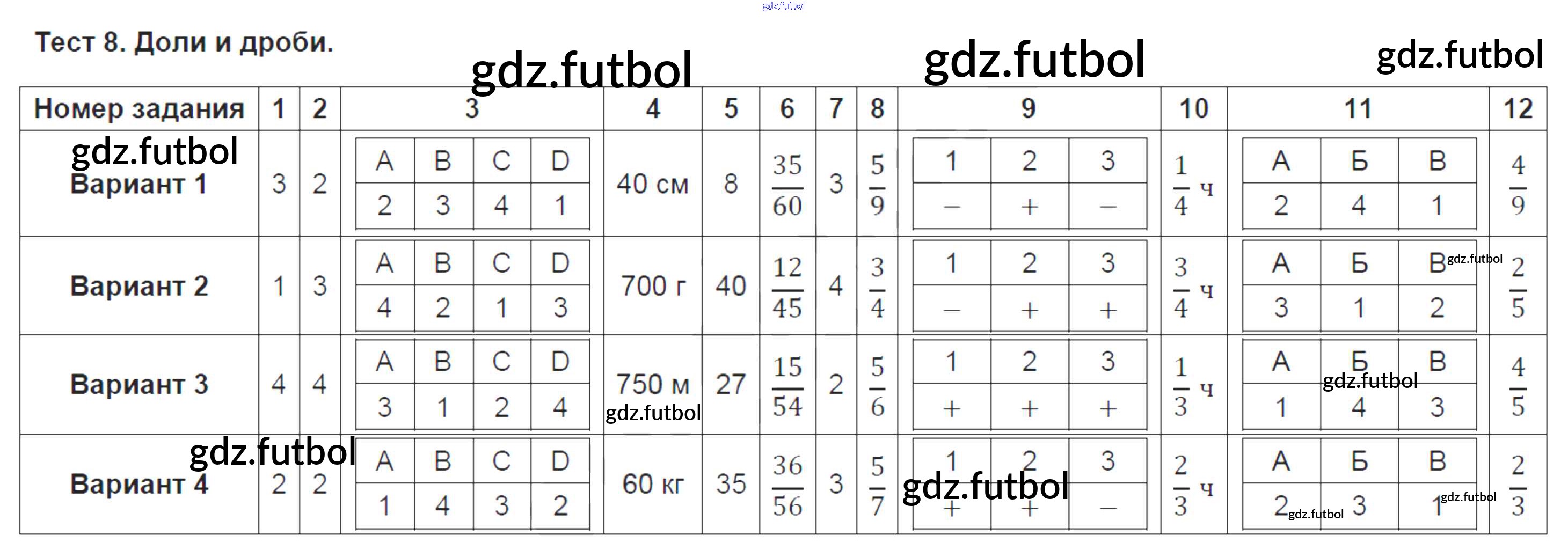 Готовые домашние задания по Математике за 5 класс Кузнецова Тематические тесты 2018 ФГОС - Тесты Тест №8. Доли и дроби