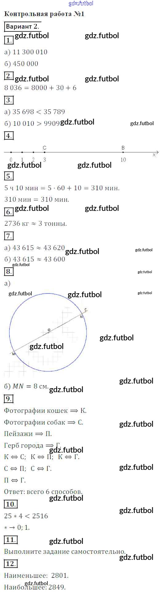 Готовые домашние задания по Математике за 5 класс Кузнецова Контрольные работы 2018 ФГОС - КР №1. Натуральные числа. Линии Вариант 2