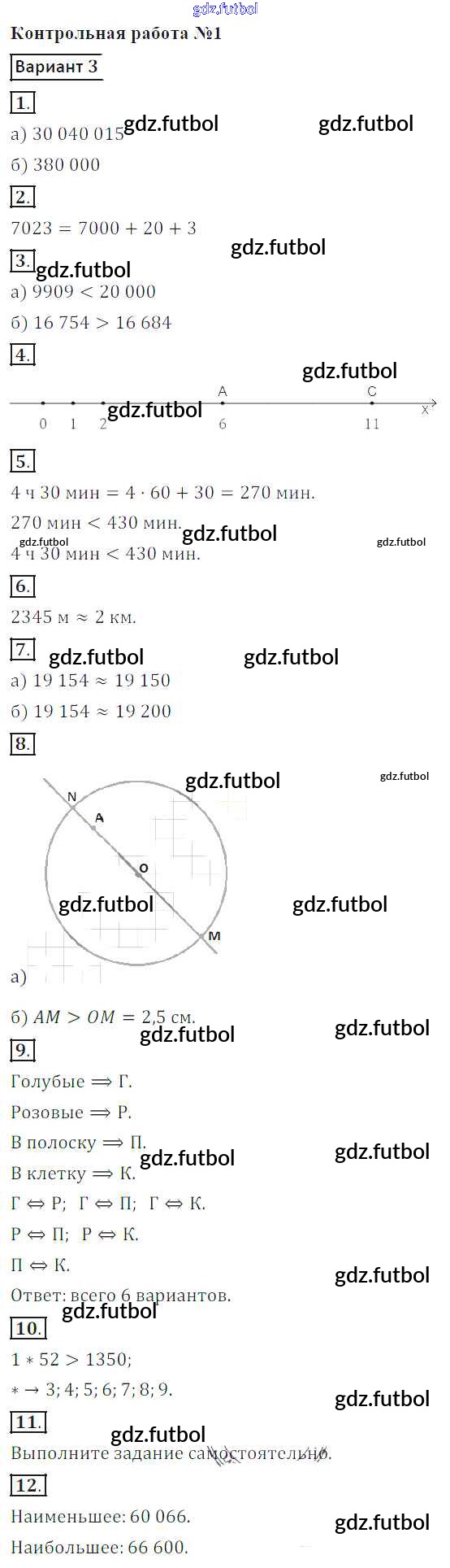 Готовые домашние задания по Математике за 5 класс Кузнецова Контрольные работы 2018 ФГОС - КР №1. Натуральные числа. Линии Вариант 3