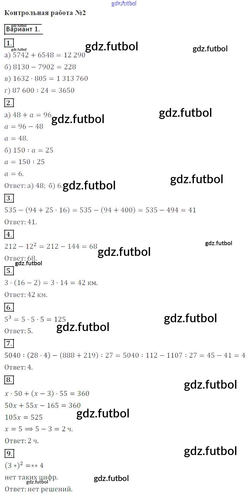 Готовые домашние задания по Математике за 5 класс Кузнецова Контрольные работы 2018 ФГОС - КР №2. Действия с натуральными числами Вариант 1