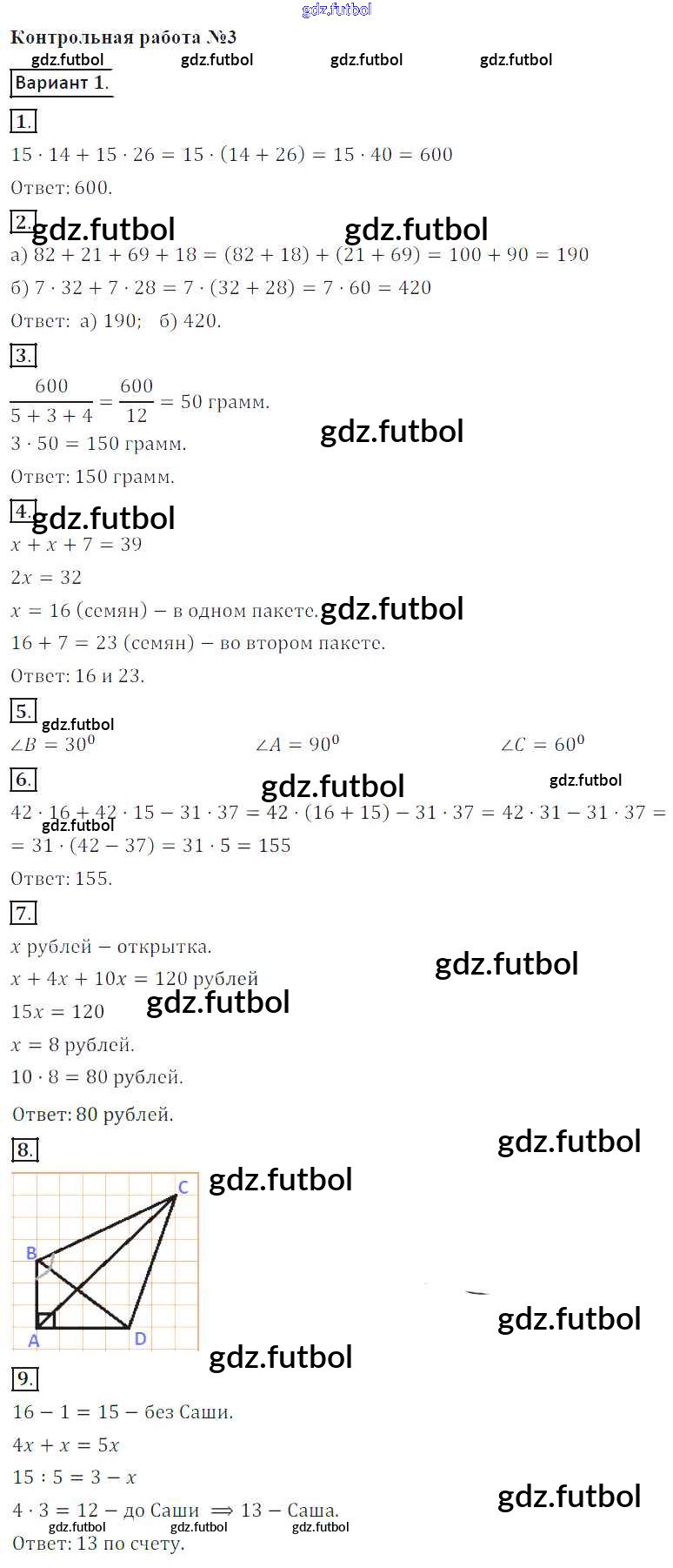 Готовые домашние задания по Математике за 5 класс Кузнецова Контрольные работы 2018 ФГОС - КР №3. Использование свойств действий при вычислениях. Углы и многоугольники Вариант 1