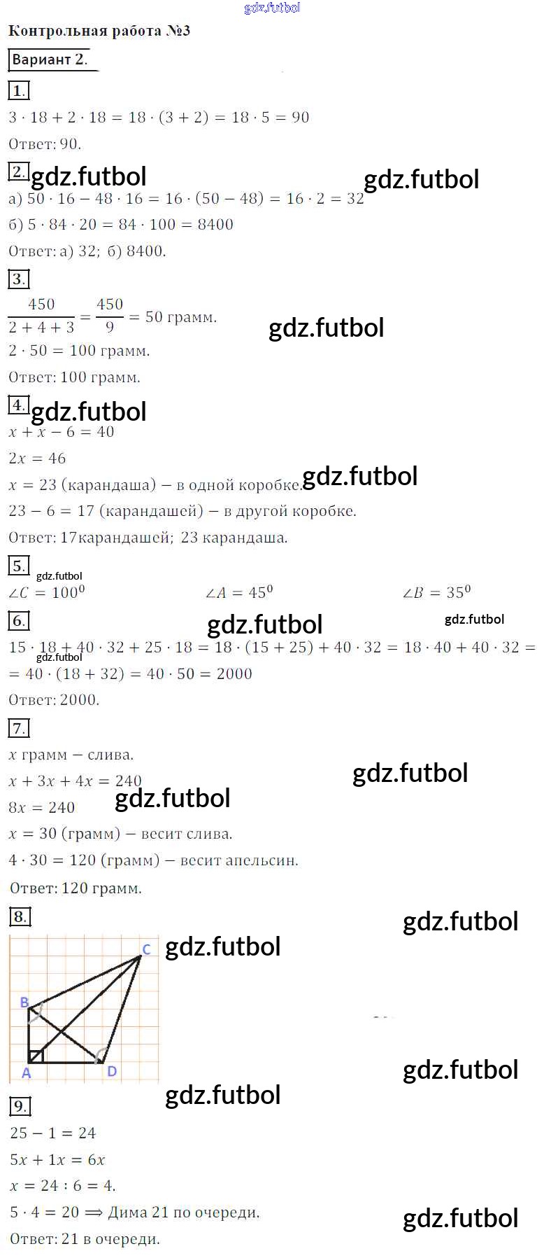 Готовые домашние задания по Математике за 5 класс Кузнецова Контрольные работы 2018 ФГОС - КР №3. Использование свойств действий при вычислениях. Углы и многоугольники Вариант 2