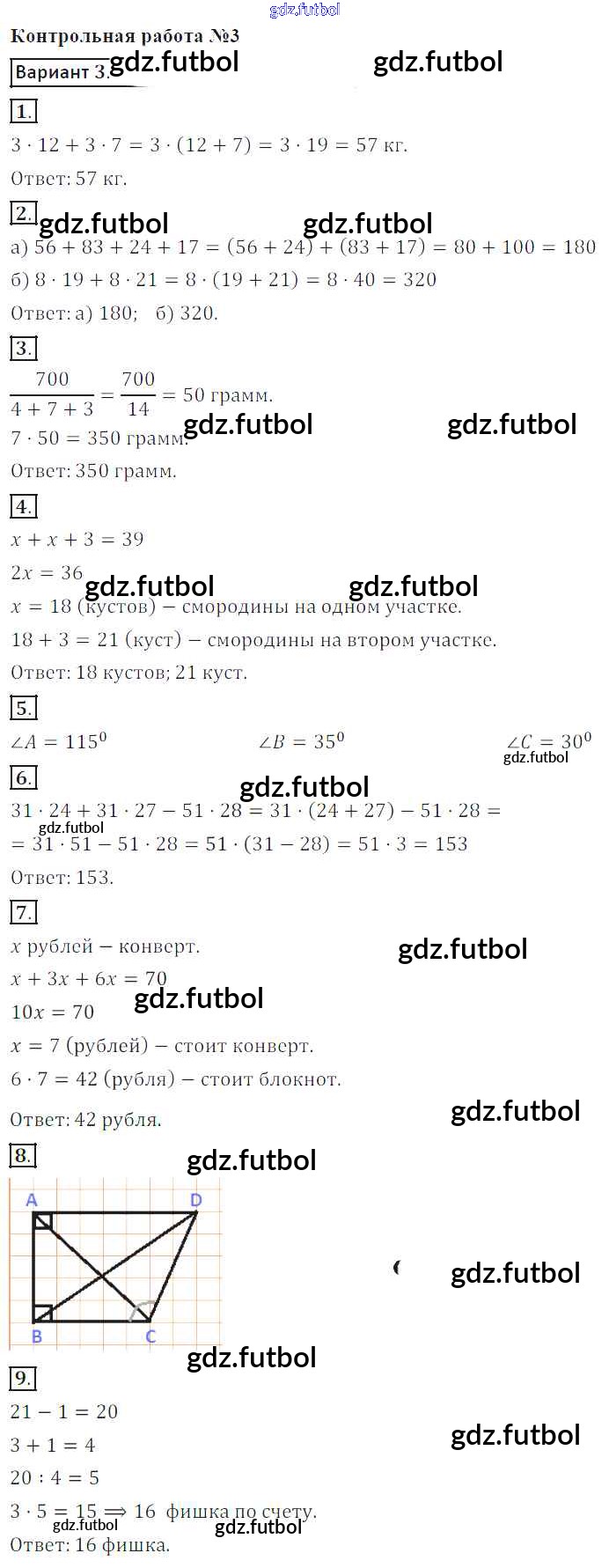 Готовые домашние задания по Математике за 5 класс Кузнецова Контрольные работы 2018 ФГОС - КР №3. Использование свойств действий при вычислениях. Углы и многоугольники Вариант 3