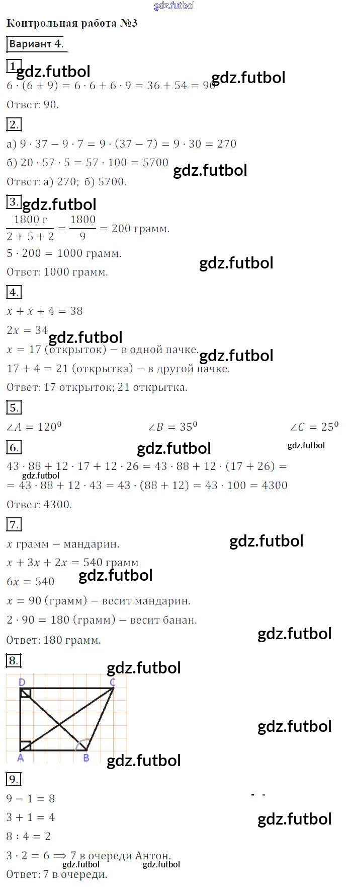 Готовые домашние задания по Математике за 5 класс Кузнецова Контрольные работы 2018 ФГОС - КР №3. Использование свойств действий при вычислениях. Углы и многоугольники Вариант 4
