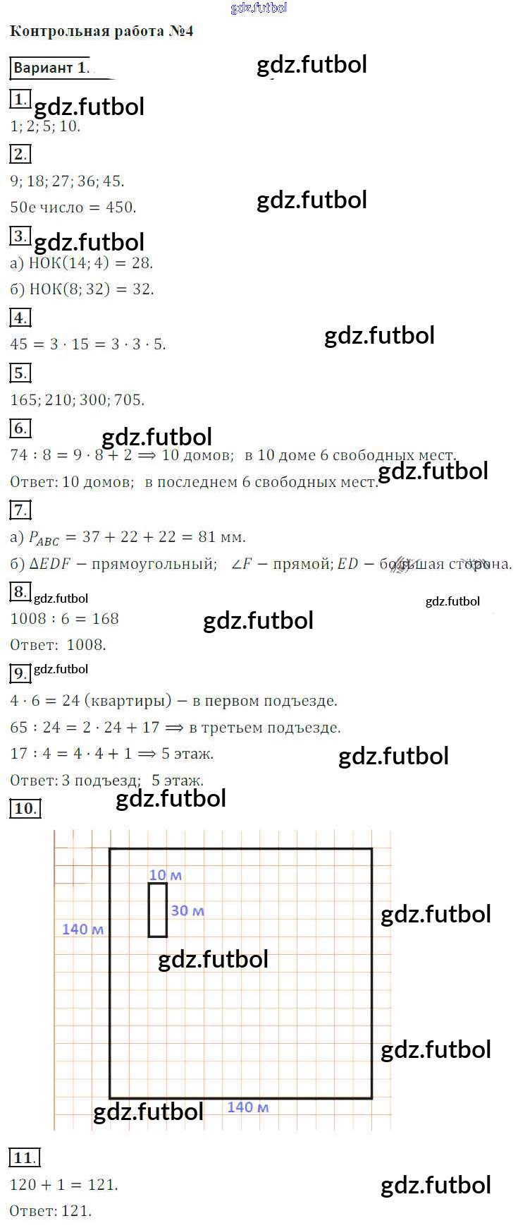 Готовые домашние задания по Математике за 5 класс Кузнецова Контрольные работы 2018 ФГОС - КР №4. Делимость чисел. Треугольник и четырехугольники Вариант 1