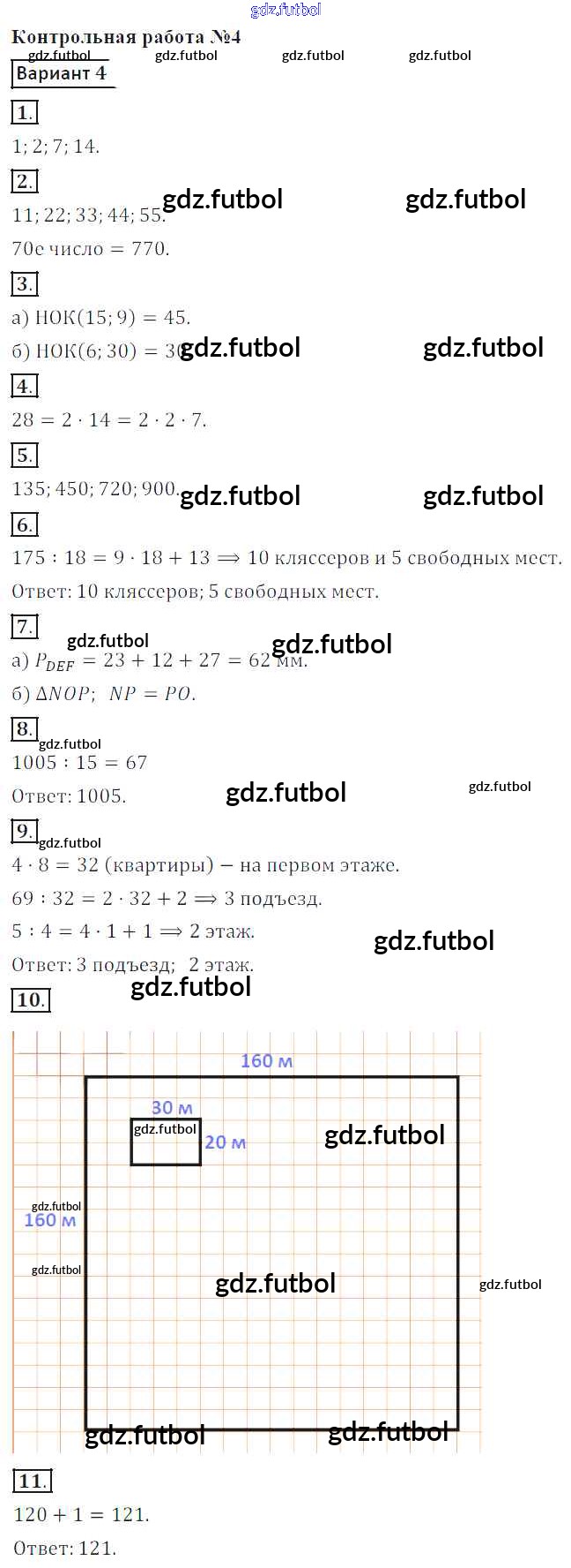 Готовые домашние задания по Математике за 5 класс Кузнецова Контрольные работы 2018 ФГОС - КР №4. Делимость чисел. Треугольник и четырехугольники Вариант 4