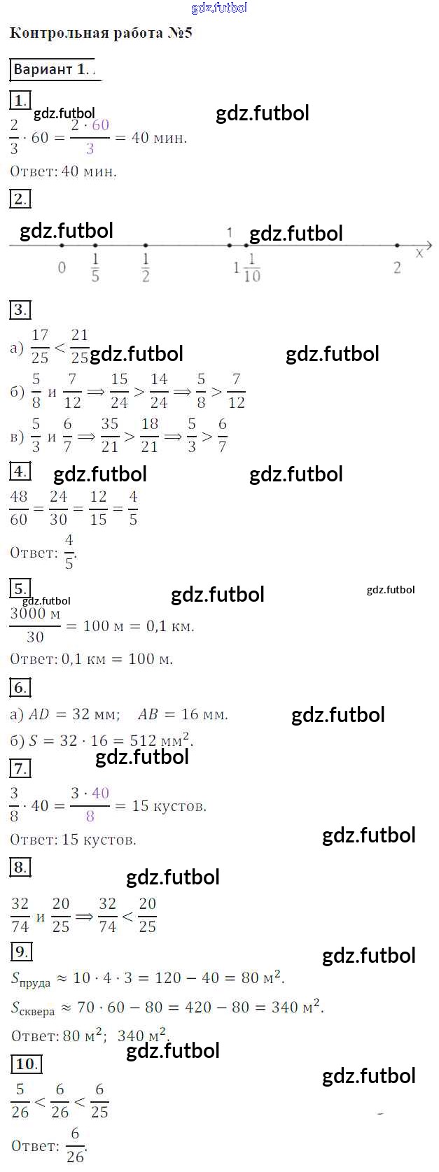 Готовые домашние задания по Математике за 5 класс Кузнецова Контрольные работы 2018 ФГОС - КР №5. Дроби. Треугольник и четырехугольники Вариант 1