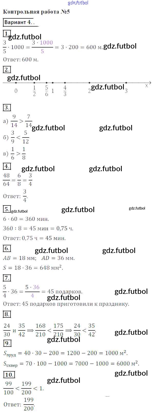 Готовые домашние задания по Математике за 5 класс Кузнецова Контрольные работы 2018 ФГОС - КР №5. Дроби. Треугольник и четырехугольники Вариант 4