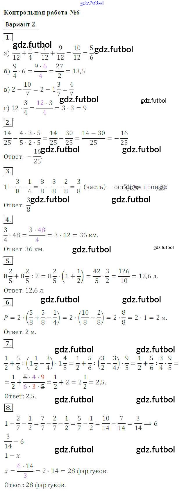 Готовые домашние задания по Математике за 5 класс Кузнецова Контрольные работы 2018 ФГОС - КР №6. Действия с дробями Вариант 2