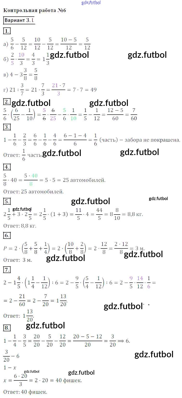 Готовые домашние задания по Математике за 5 класс Кузнецова Контрольные работы 2018 ФГОС - КР №6. Действия с дробями Вариант 3