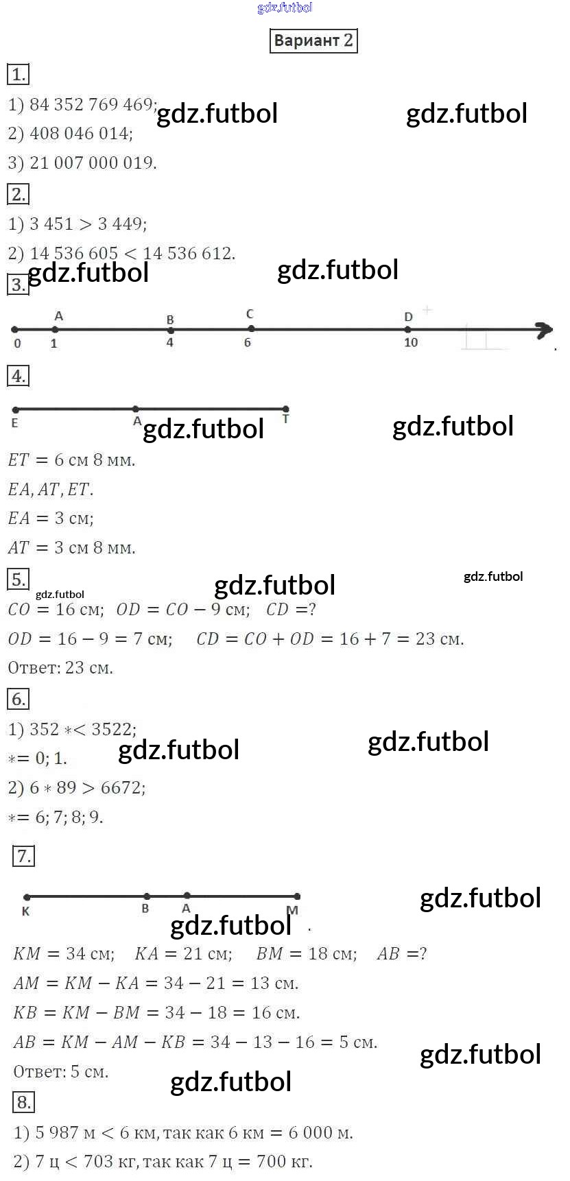 Готовые домашние задания по Математике за 5 класс Мерзляк Дидактические материалы Алгоритм успеха 2017 ФГОС - КР №1. Натуральные числа вариант 2