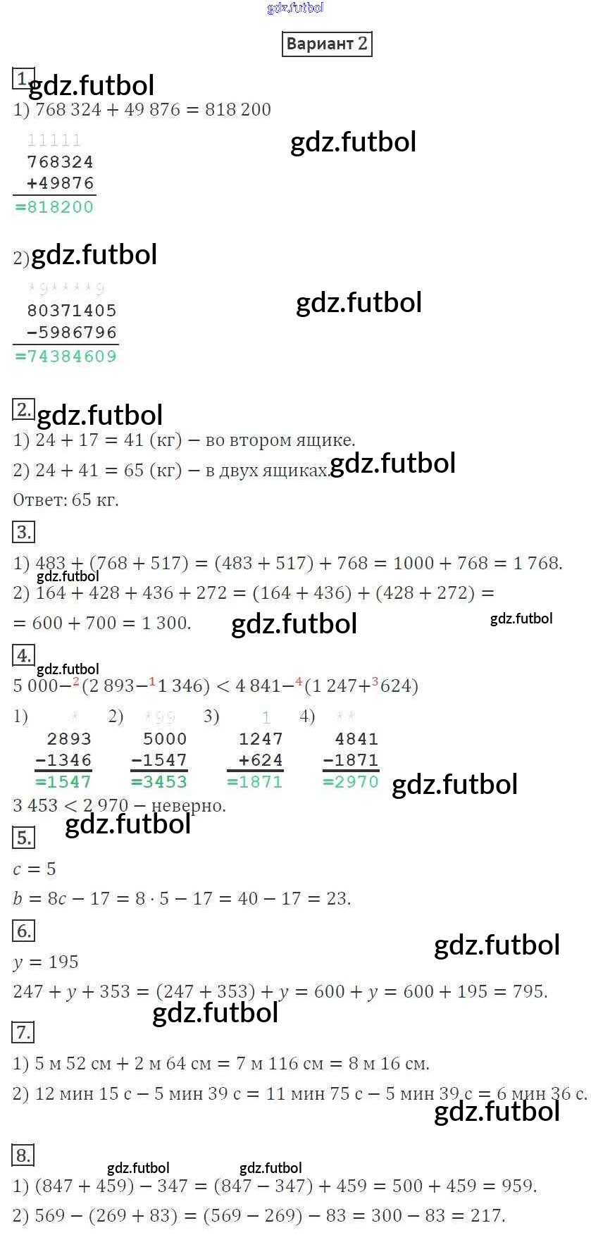 Готовые домашние задания по Математике за 5 класс Мерзляк Дидактические материалы Алгоритм успеха 2017 ФГОС - КР №2. Сложение и вычитание натуральных чисел. Числовые и буквенные выражения. Числа вариант 2