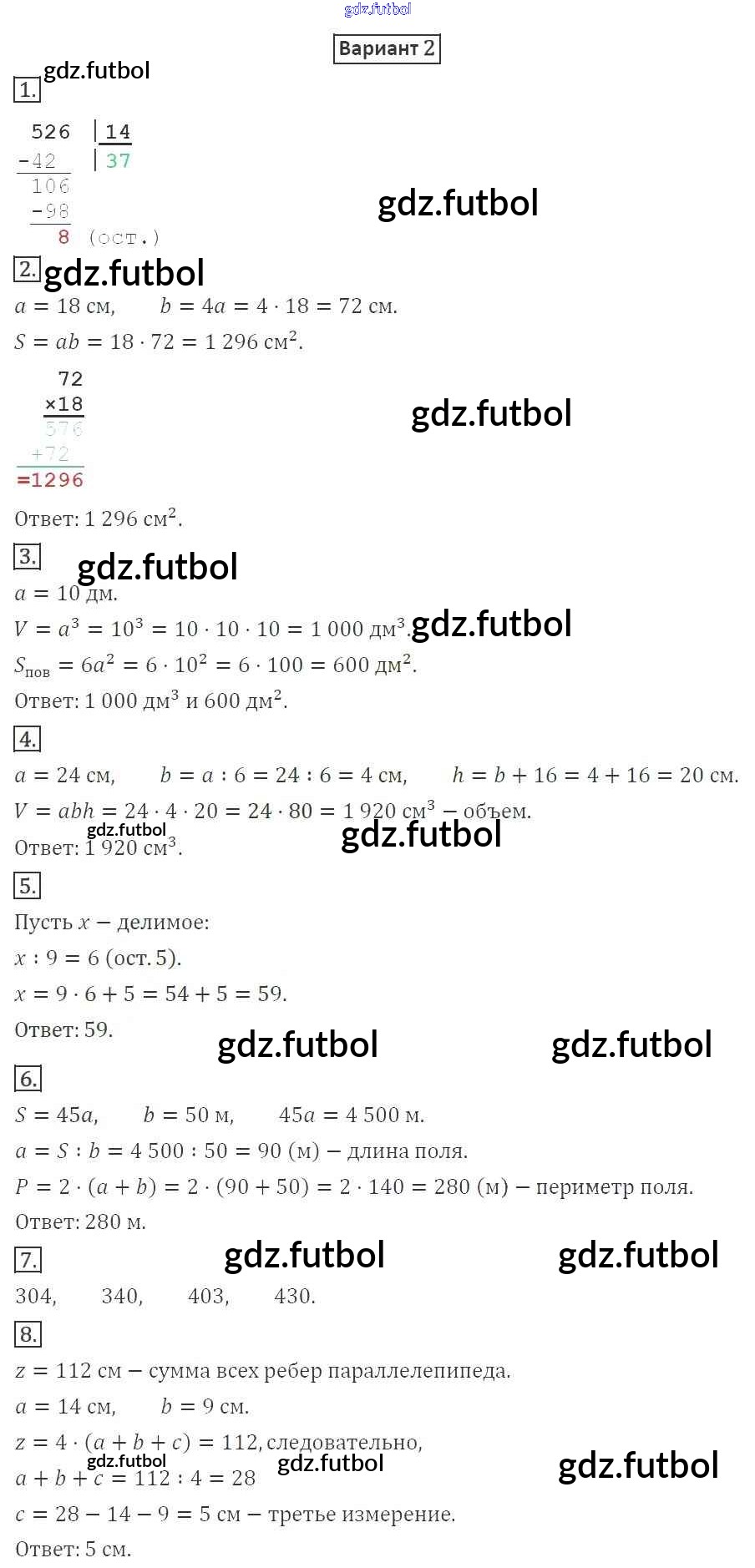 Готовые домашние задания по Математике за 5 класс Мерзляк Дидактические материалы Алгоритм успеха 2017 ФГОС - КР №5. Деление с остатком. Площадь прямоугольника вариант 2