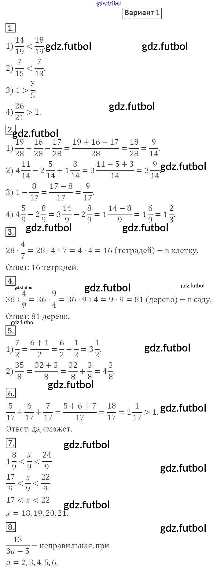Готовые домашние задания по Математике за 5 класс Мерзляк Дидактические материалы Алгоритм успеха 2017 ФГОС - КР №6. Обыкновенные дроби вариант 1