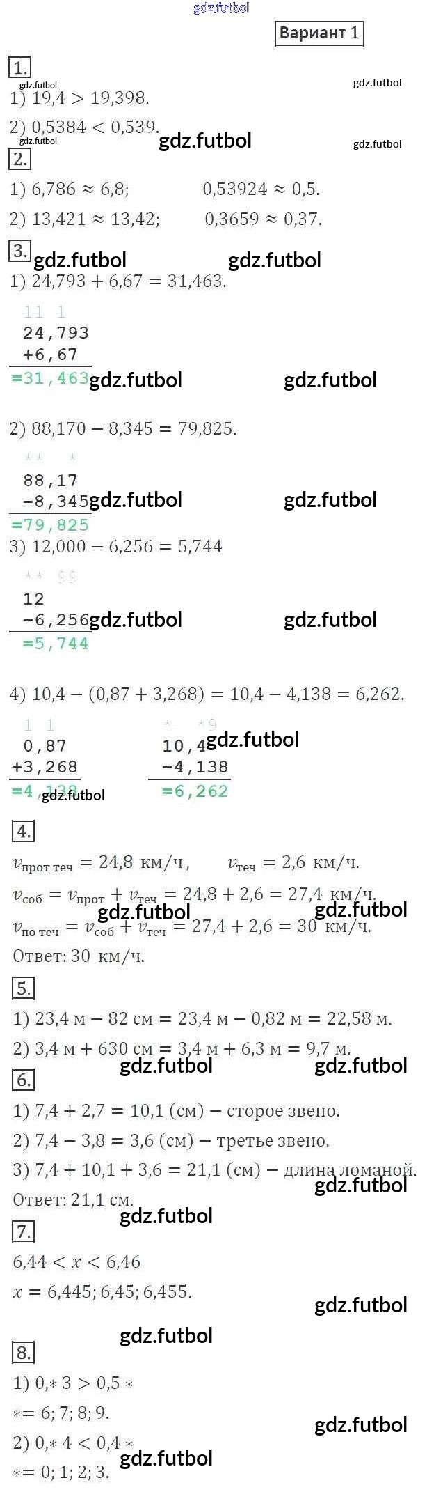 Готовые домашние задания по Математике за 5 класс Мерзляк Дидактические материалы Алгоритм успеха 2017 ФГОС - КР №7. Понятие о десятичной дроби. Сравнение, округление, сложение и вычитание вариант 1