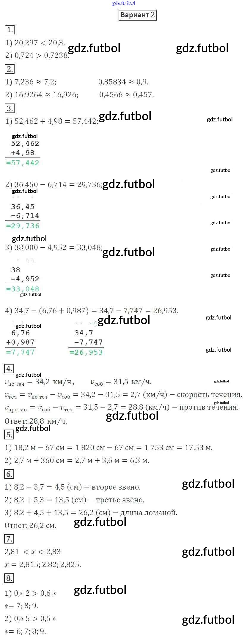 Готовые домашние задания по Математике за 5 класс Мерзляк Дидактические материалы Алгоритм успеха 2017 ФГОС - КР №7. Понятие о десятичной дроби. Сравнение, округление, сложение и вычитание вариант 2
