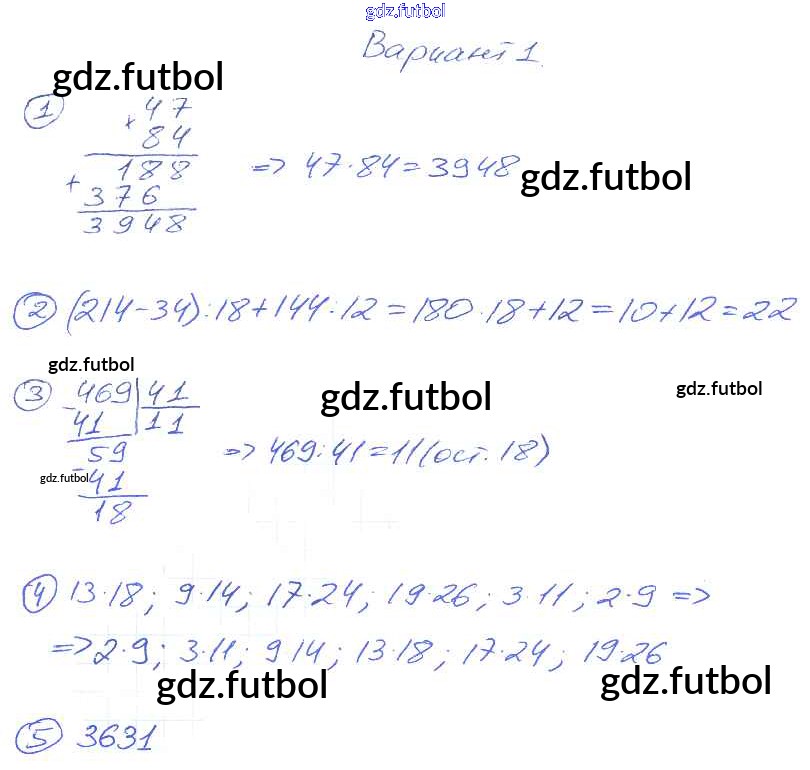 Готовые домашние задания по Математике за 5 класс Попов Самостоятельные и контрольные работы УМК 2016 ФГОС - КР-4. Варианты 1