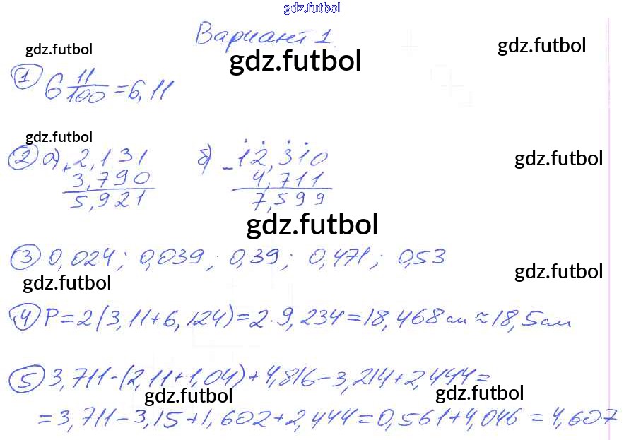 Готовые домашние задания по Математике за 5 класс Попов Самостоятельные и контрольные работы УМК 2016 ФГОС - КР-9. Варианты 1