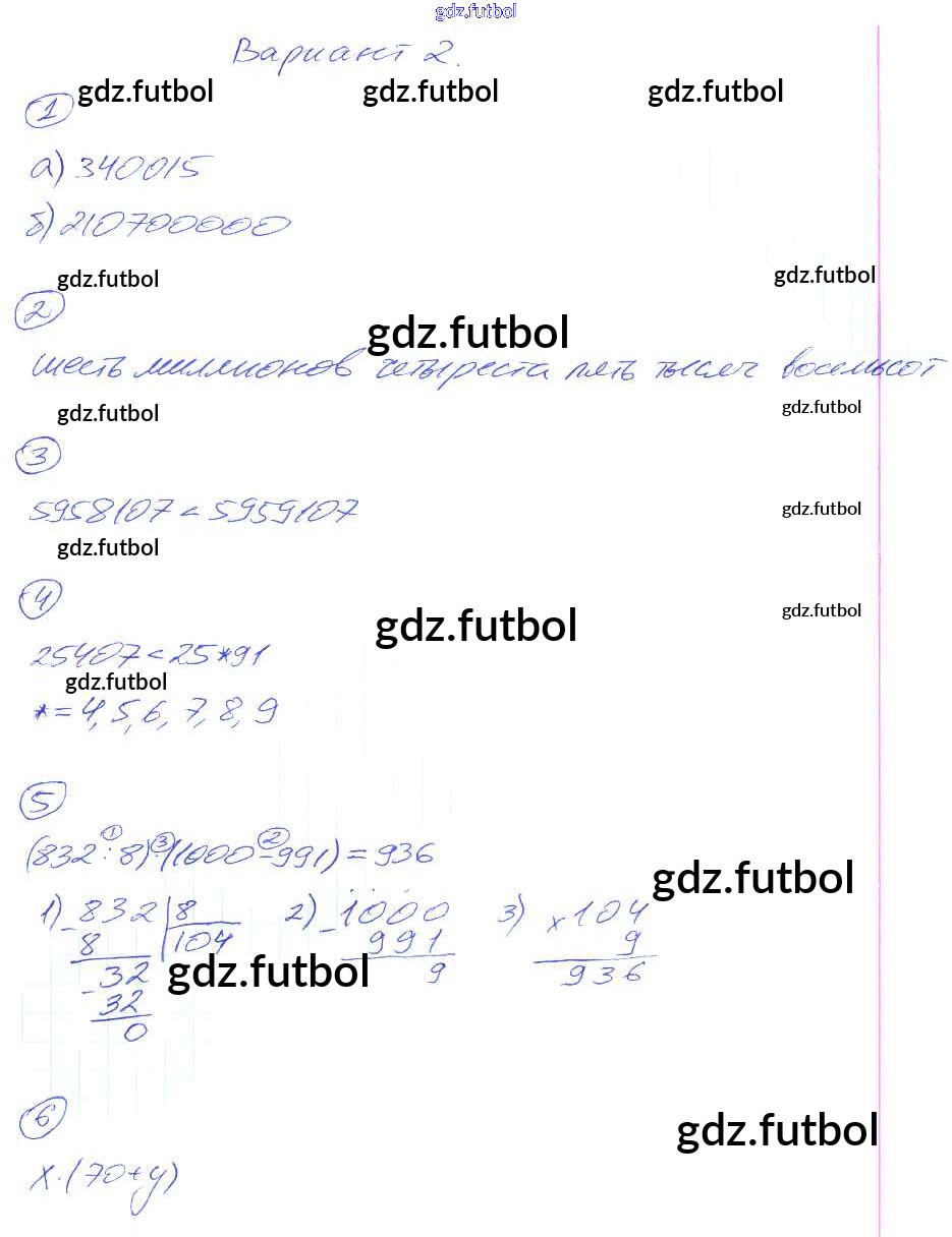 Готовые домашние задания по Математике за 5 класс Рудницкая Дидактические материалы УМК 2017 ФГОС - КР-1. Варианты 2