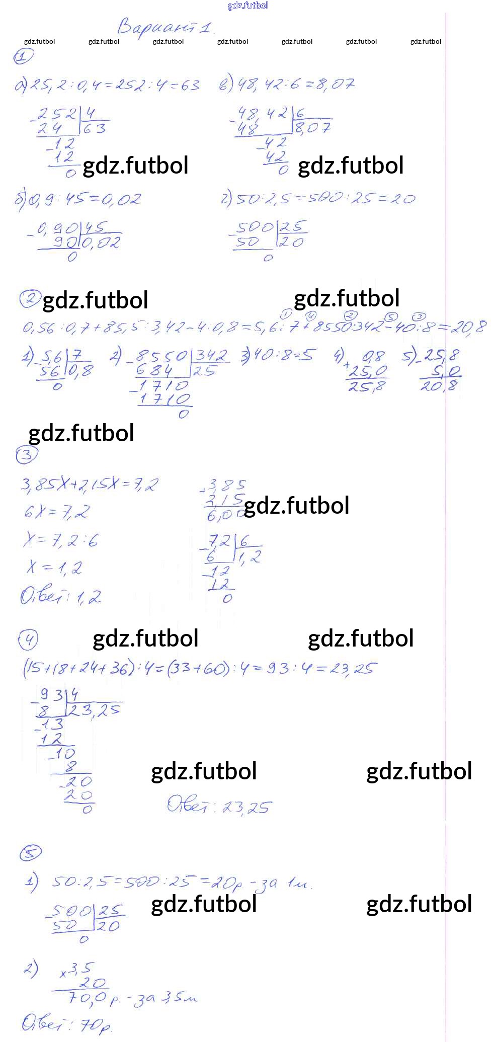 Готовые домашние задания по Математике за 5 класс Рудницкая Дидактические материалы УМК 2017 ФГОС - КР-14. Варианты 1