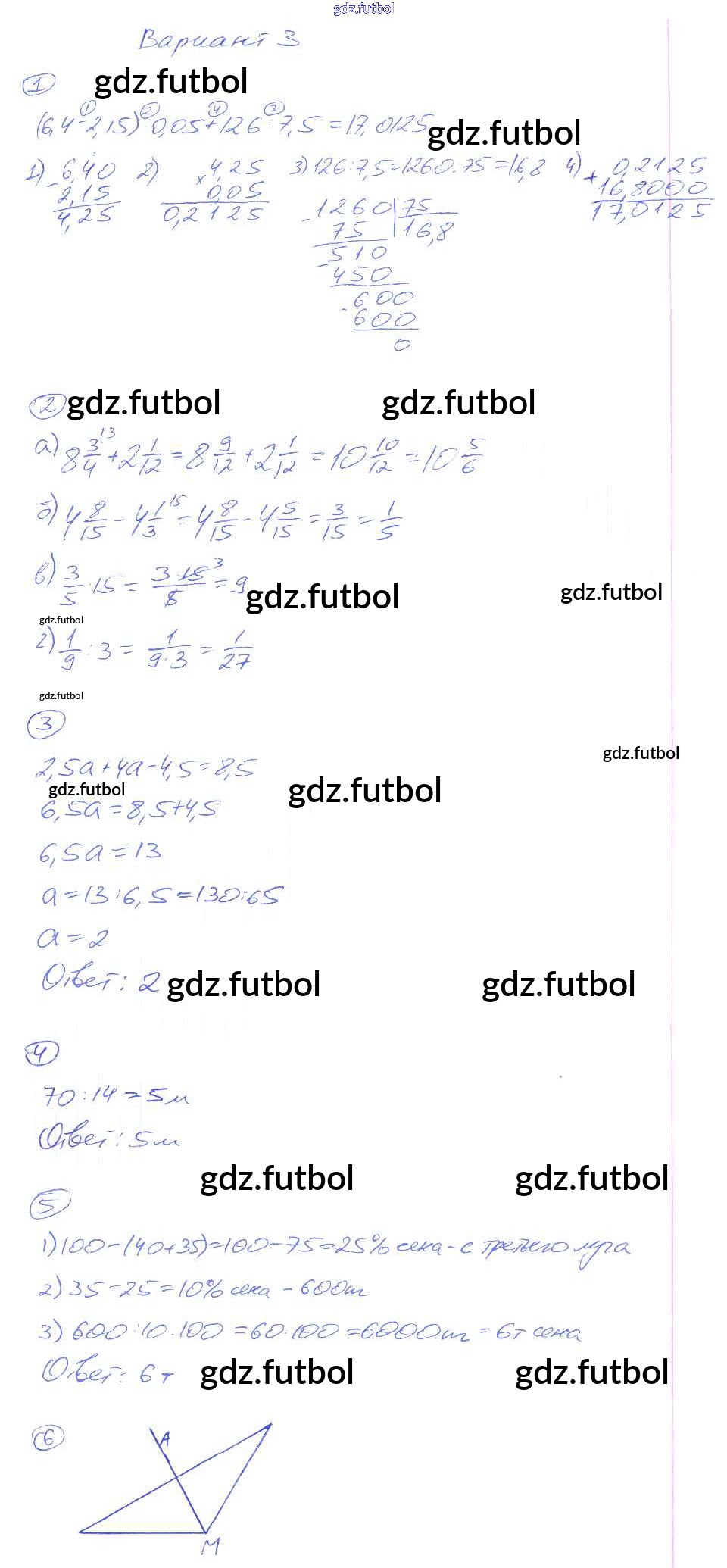 Готовые домашние задания по Математике за 5 класс Рудницкая Дидактические материалы УМК 2017 ФГОС - КР-16. Варианты 3