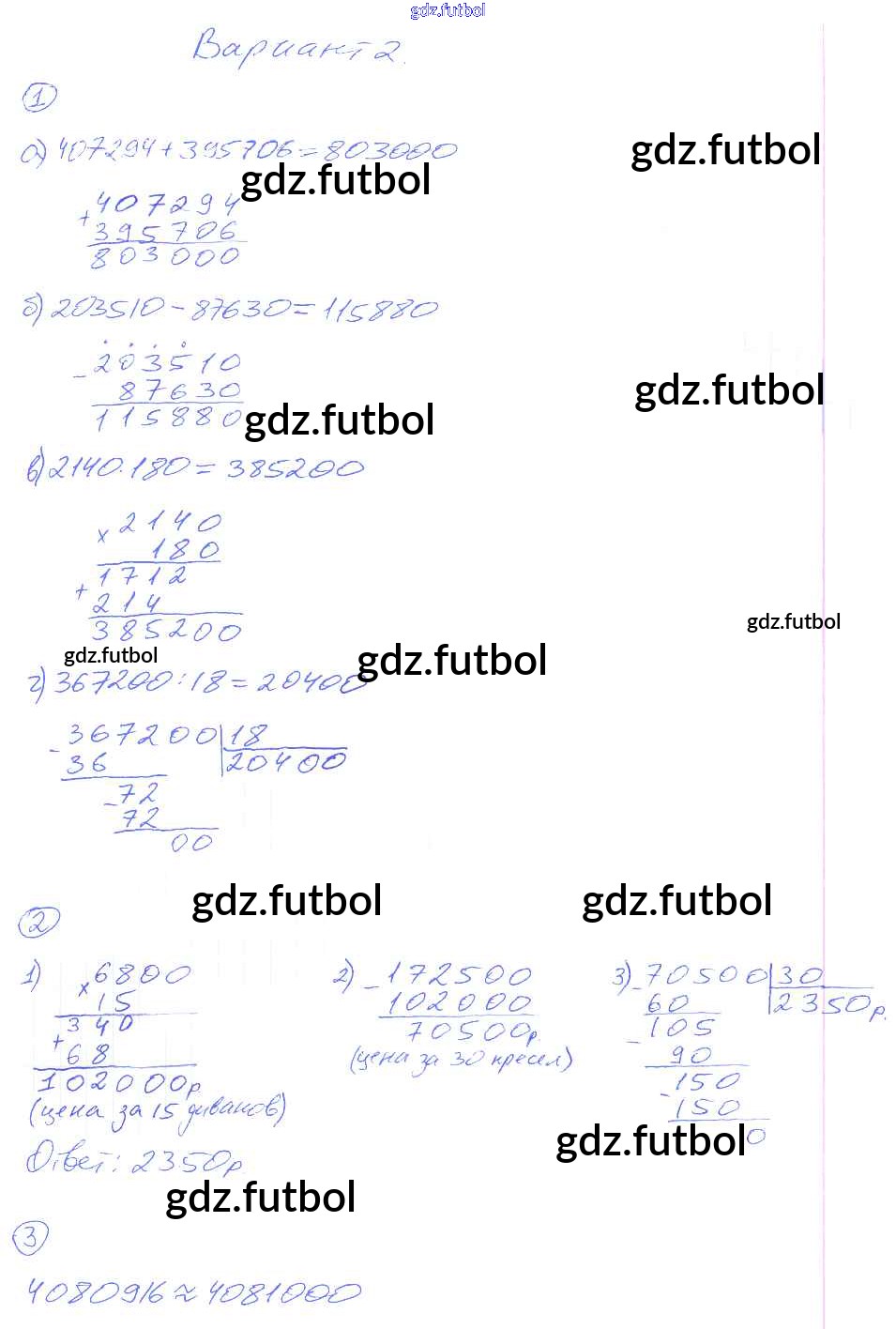 Готовые домашние задания по Математике за 5 класс Рудницкая Дидактические материалы УМК 2017 ФГОС - КР-3. Варианты 2