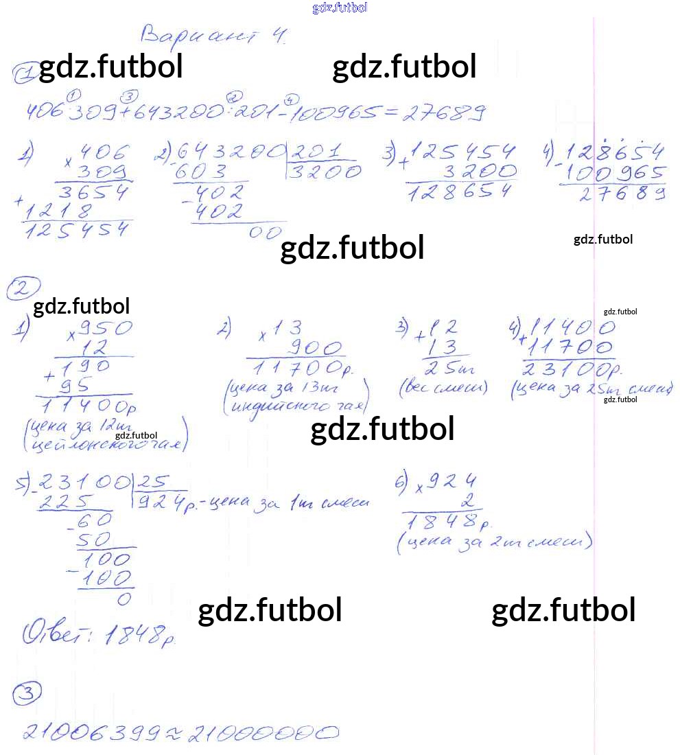 Готовые домашние задания по Математике за 5 класс Рудницкая Дидактические материалы УМК 2017 ФГОС - КР-3. Варианты 4