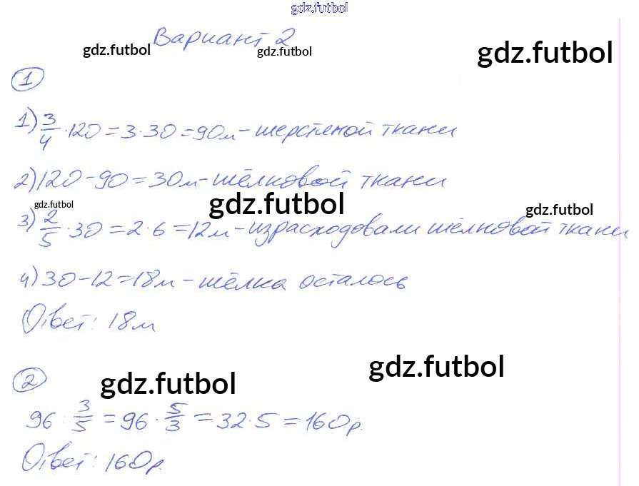 Готовые домашние задания по Математике за 5 класс Рудницкая Дидактические материалы УМК 2017 ФГОС - КР-6. Варианты 2