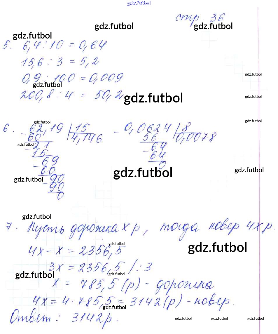 Готовые домашние задания по Математике за 5 класс Рудницкая Рабочая тетрадь УМК 2013 ФГОС - Часть 2. Страницы 36