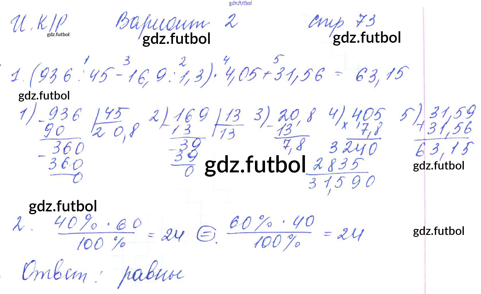 Готовые домашние задания по Математике за 5 класс Рудницкая Рабочая тетрадь УМК 2013 ФГОС - Часть 2. Страницы 73