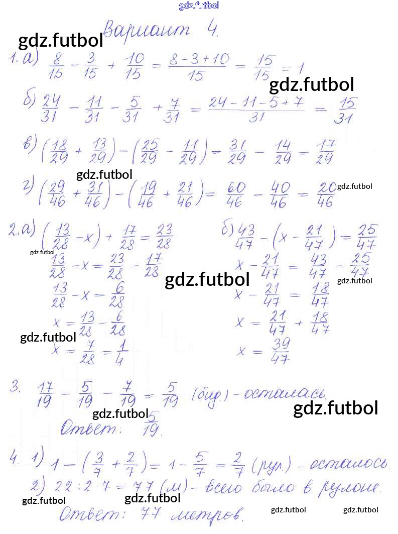 Готовые домашние задания по Математике за 5 класс Журавлев Контрольные и самостоятельные работы УМК 2015 ФГОС - СР-24. Варианты 4