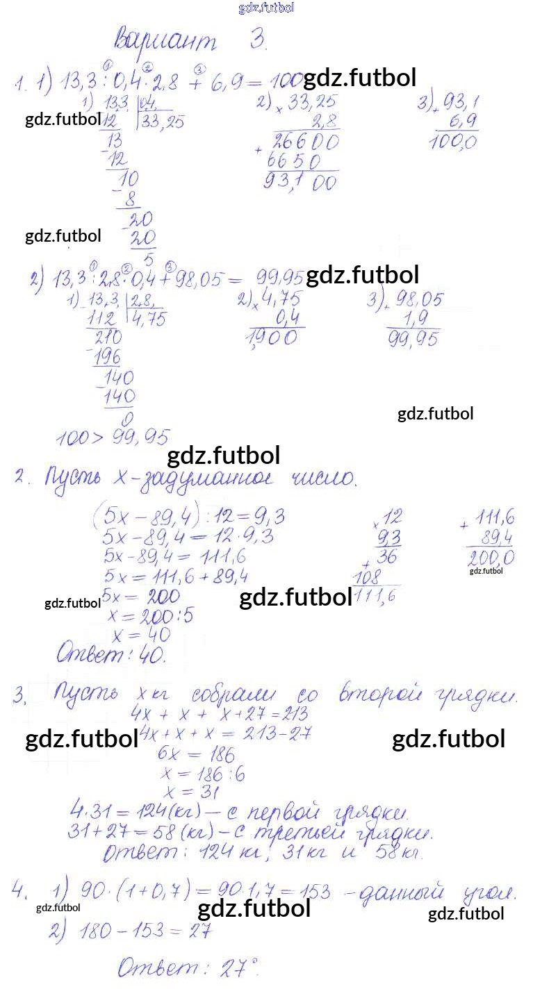 Готовые домашние задания по Математике за 5 класс Журавлев Контрольные и самостоятельные работы УМК 2015 ФГОС - СР-38. Варианты 3