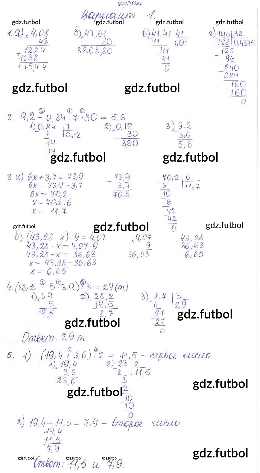 Готовые домашние задания по Математике за 5 класс Журавлев Контрольные и самостоятельные работы УМК 2015 ФГОС - КР-11. Варианты 1