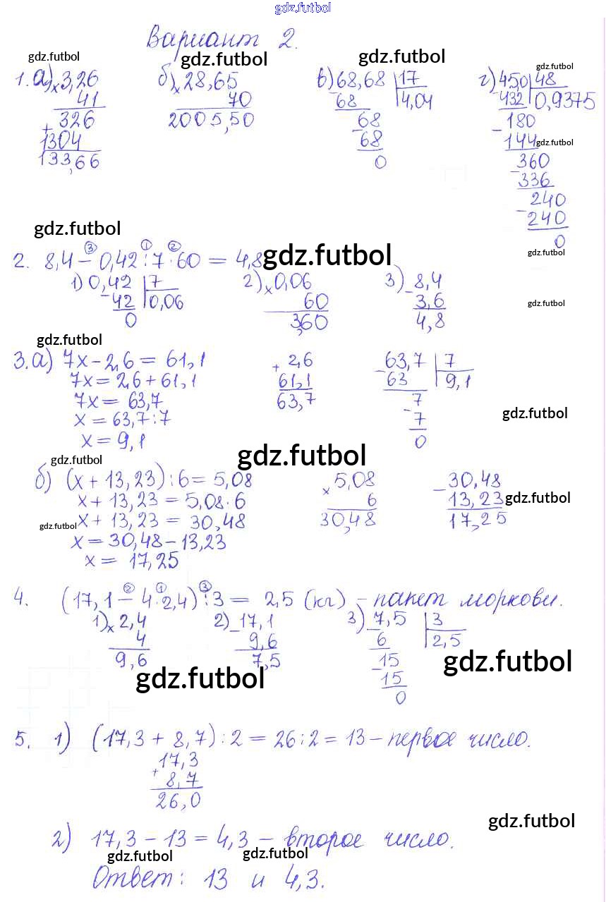 Готовые домашние задания по Математике за 5 класс Журавлев Контрольные и самостоятельные работы УМК 2015 ФГОС - КР-11. Варианты 2