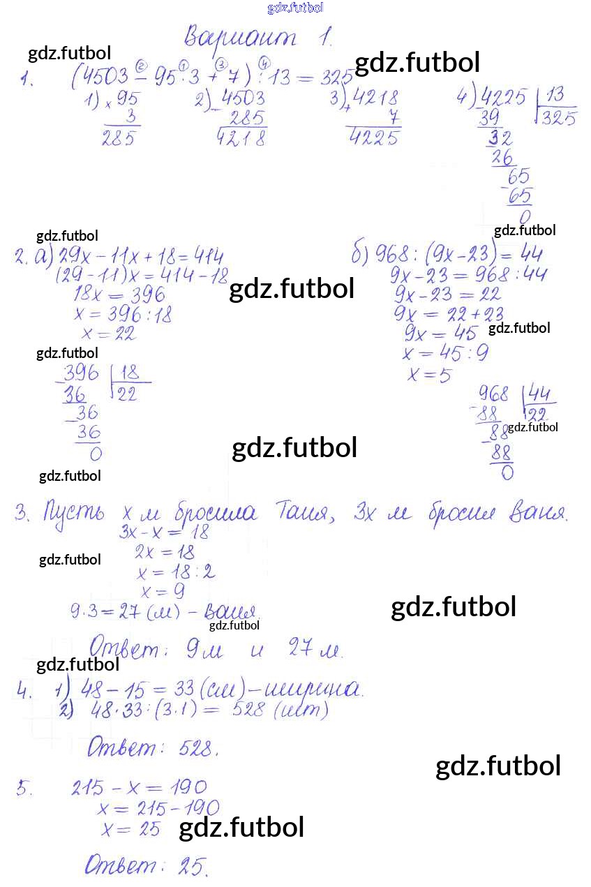 Готовые домашние задания по Математике за 5 класс Журавлев Контрольные и самостоятельные работы УМК 2015 ФГОС - КР-7. Варианты 1