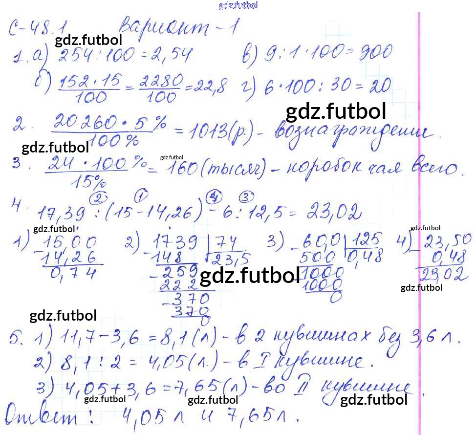 Готовые домашние задания по Математике за 5 класс Зубарева Самостоятельные работы 2016 ФГОС - СР-48.1 1