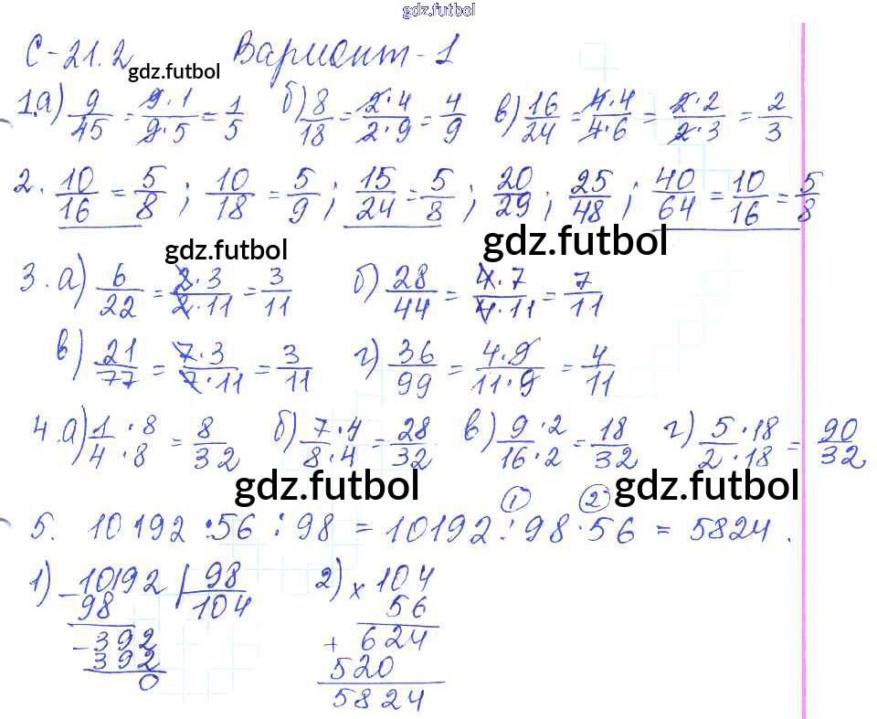 Готовые домашние задания по Математике за 5 класс Зубарева Самостоятельные работы 2016 ФГОС - СР-21.2 1