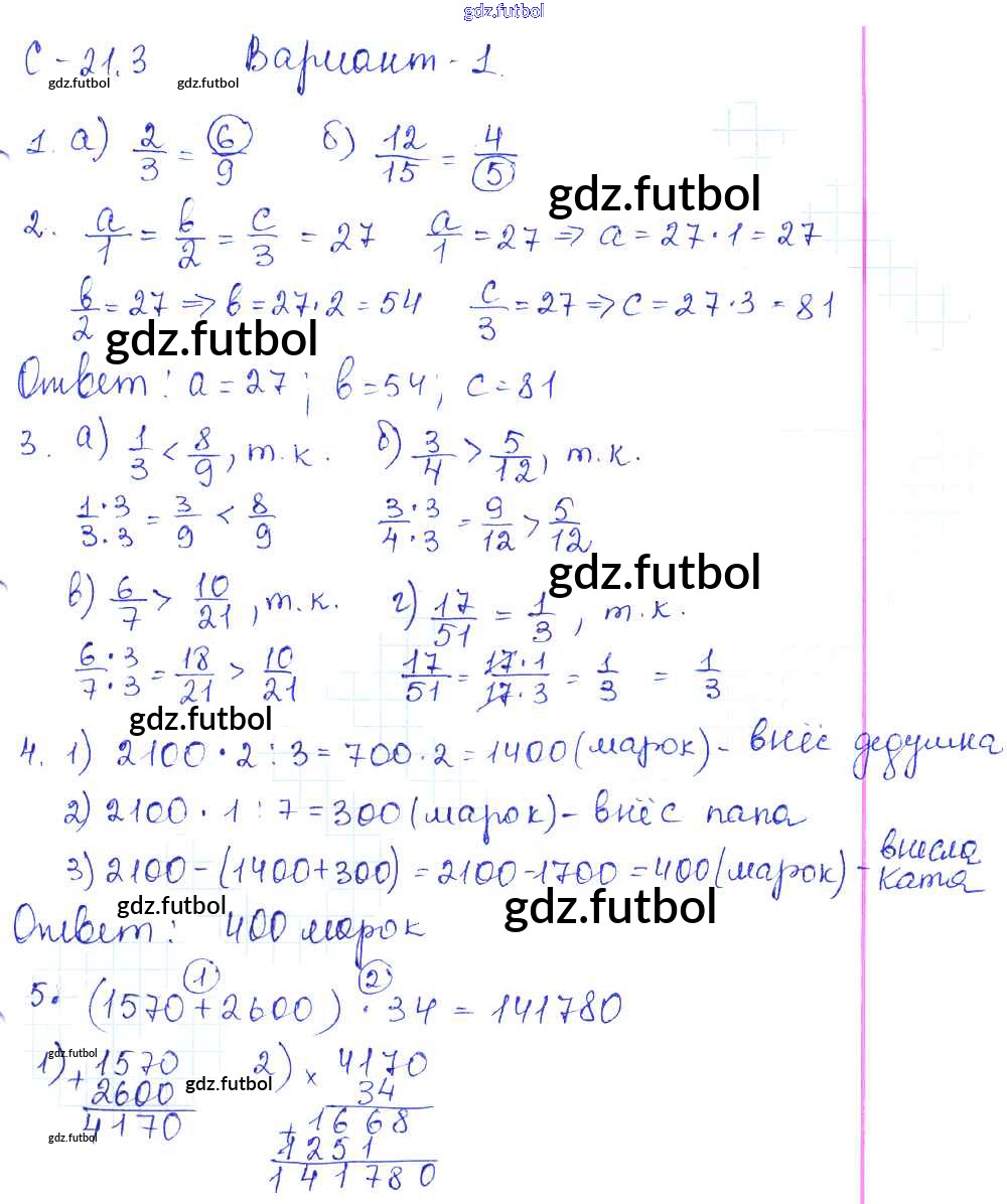 Готовые домашние задания по Математике за 5 класс Зубарева Самостоятельные работы 2016 ФГОС - СР-21.3 1