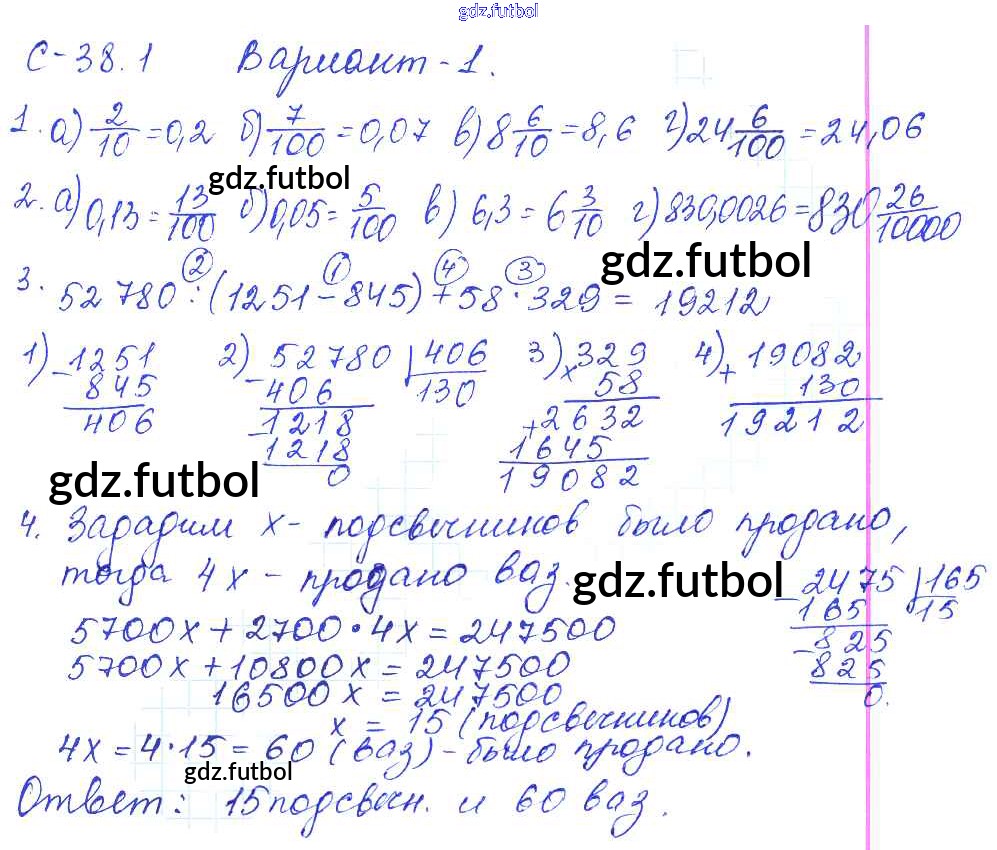 Готовые домашние задания по Математике за 5 класс Зубарева Самостоятельные работы 2016 ФГОС - СР-38.1 1