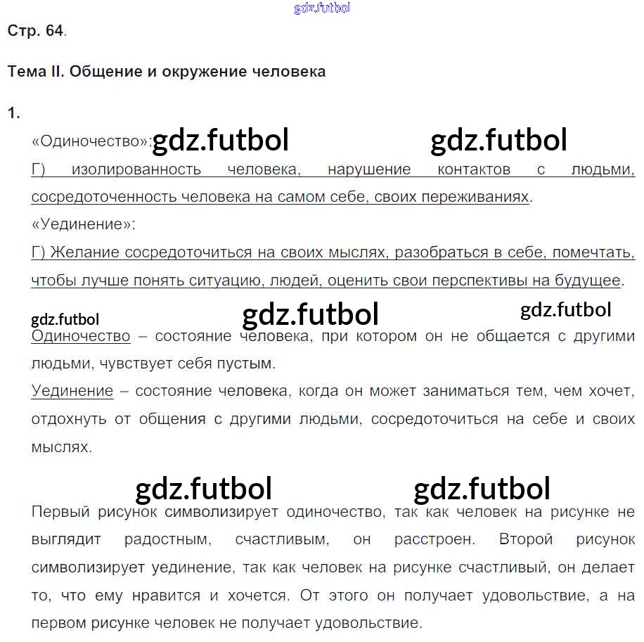 Готовые домашние задания по Обществознанию за 5 класс Болотина Рабочая тетрадь Вертикаль 2019 ФГОС - Тема 2. Общение и окружение человека стр. 64