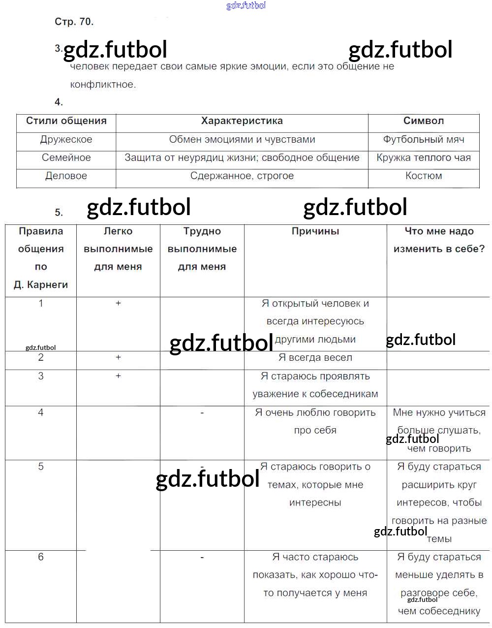 Готовые домашние задания по Обществознанию за 5 класс Болотина Рабочая тетрадь Вертикаль 2019 ФГОС - Тема 2. Общение и окружение человека стр. 70