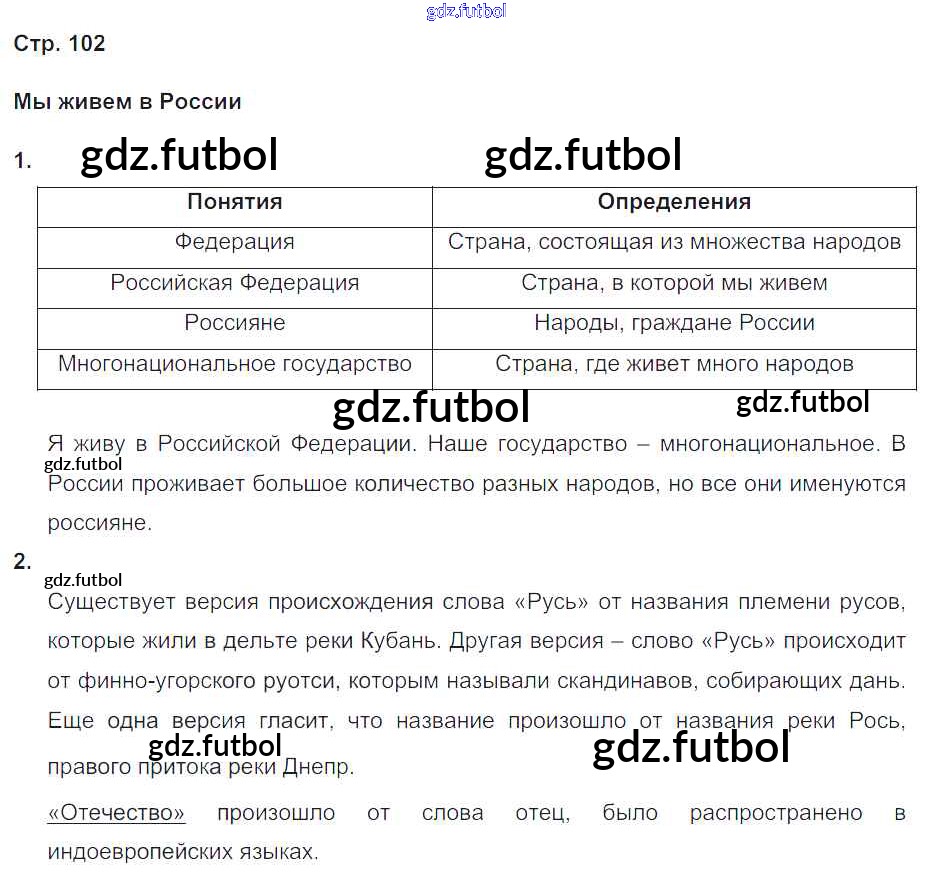 Готовые домашние задания по Обществознанию за 5 класс Болотина Рабочая тетрадь Вертикаль 2019 ФГОС - Тема 3. Наша Родина - Россия - Российская Федерация стр. 102