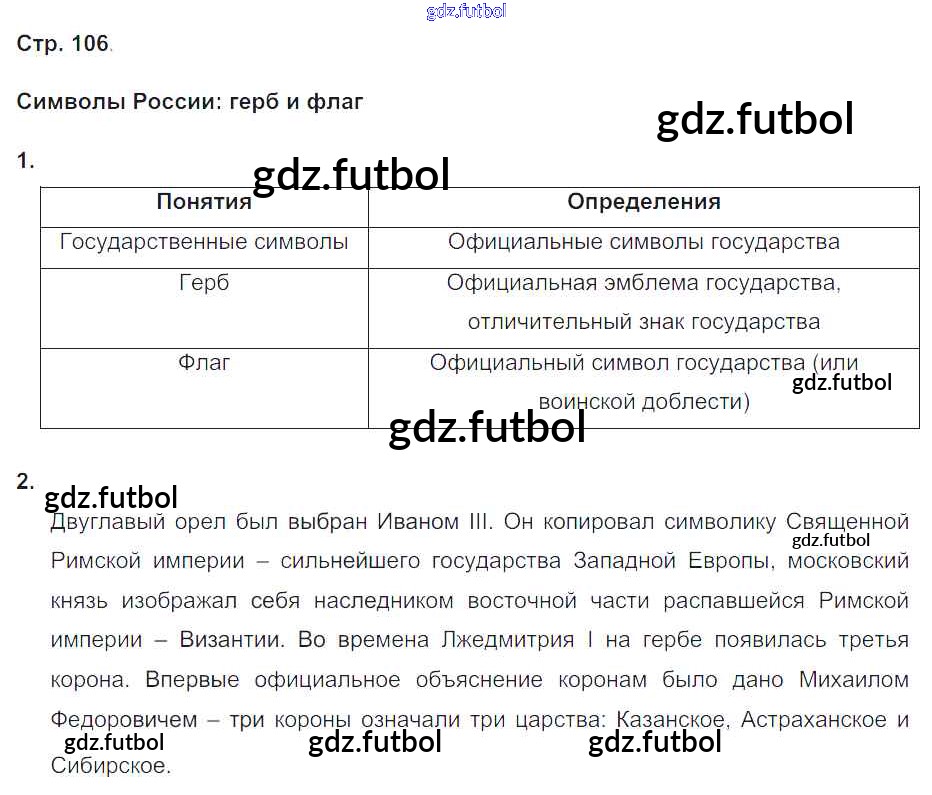 Готовые домашние задания по Обществознанию за 5 класс Болотина Рабочая тетрадь Вертикаль 2019 ФГОС - Тема 3. Наша Родина - Россия - Российская Федерация стр. 106