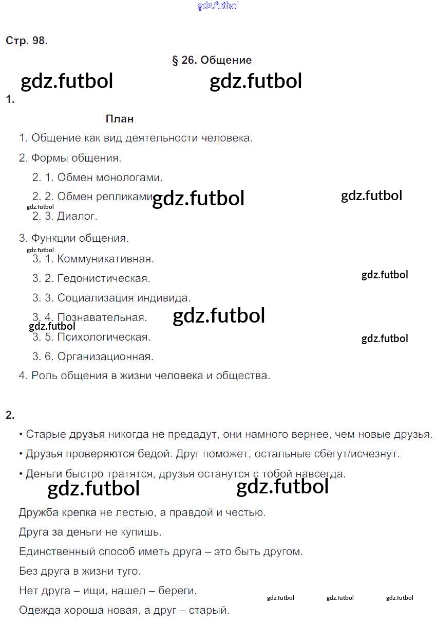 Готовые домашние задания по Обществознанию за 5 класс Хромова Рабочая тетрадь Инновационная школа 2016 ФГОС - Страницы 98