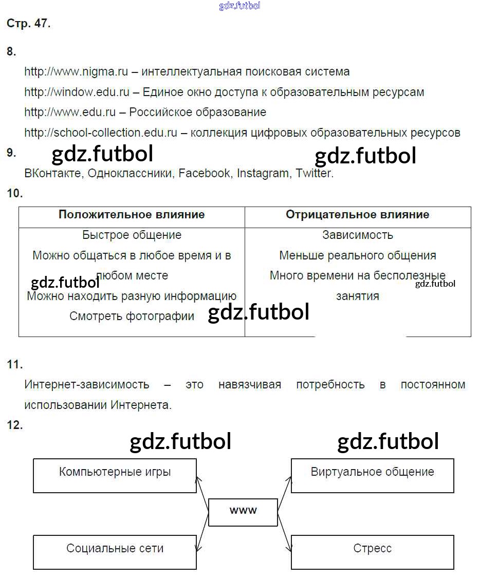 Готовые решения задач (ГДЗ) по Обществознанию пятый класс Соболева, Трухина Рабочая тетрадь УМК 2018 ФГОС - Страницы 47 доступны для различных учебных материалов. У нас вы сможете найти авторские решения для всех пособий, предназначенных для школьников. Не секрет, что в настоящее время многие школьники прибегают к использованию готовых решебников, ведь они содержат подробные ответы для каждого упражнения, представленного в учебнике.
