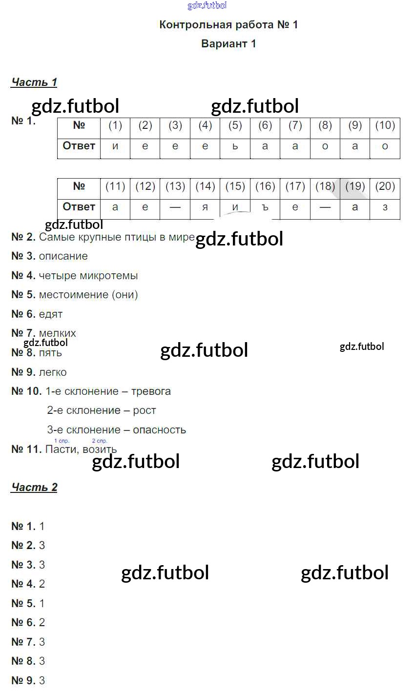 Готовые домашние задания по Русскому языку за 5 класс Гулеватая Рабочая тетрадь 2019 ФГОС - КР-1. Варианты 1